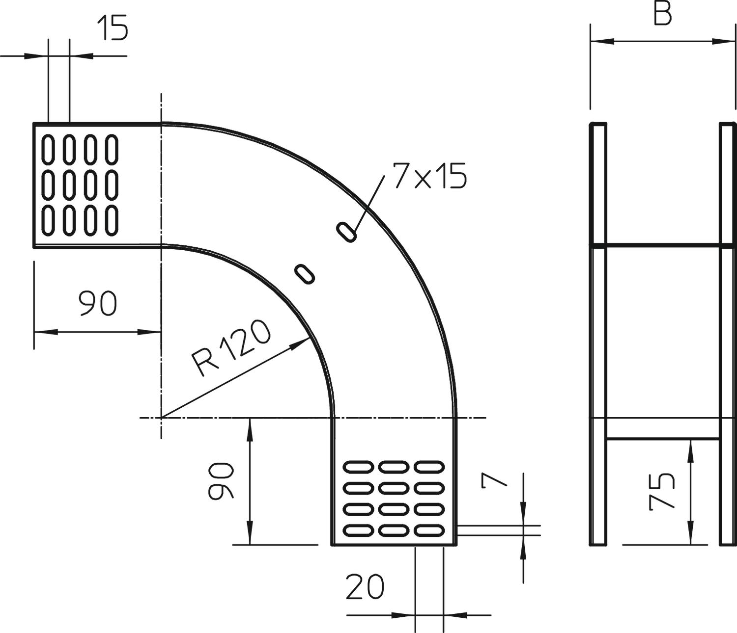 产品描述90° 垂直弯曲,下降,适用于侧高为85 mm的所有电缆梯架