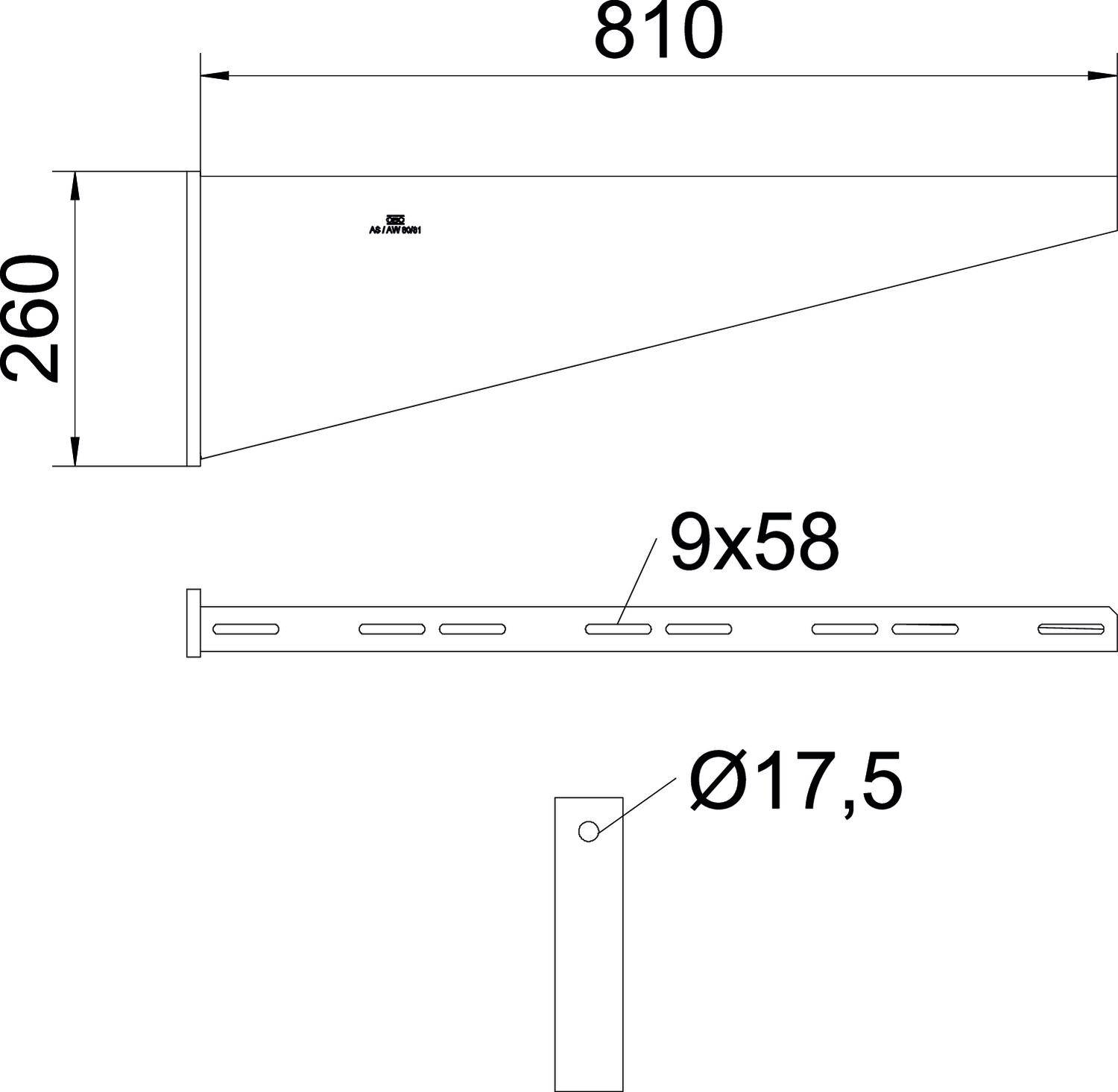 使用 M6 圆头螺钉固定电缆桥架和梯架时,请单独订购垫圈(托臂上的孔 9 x ...)。