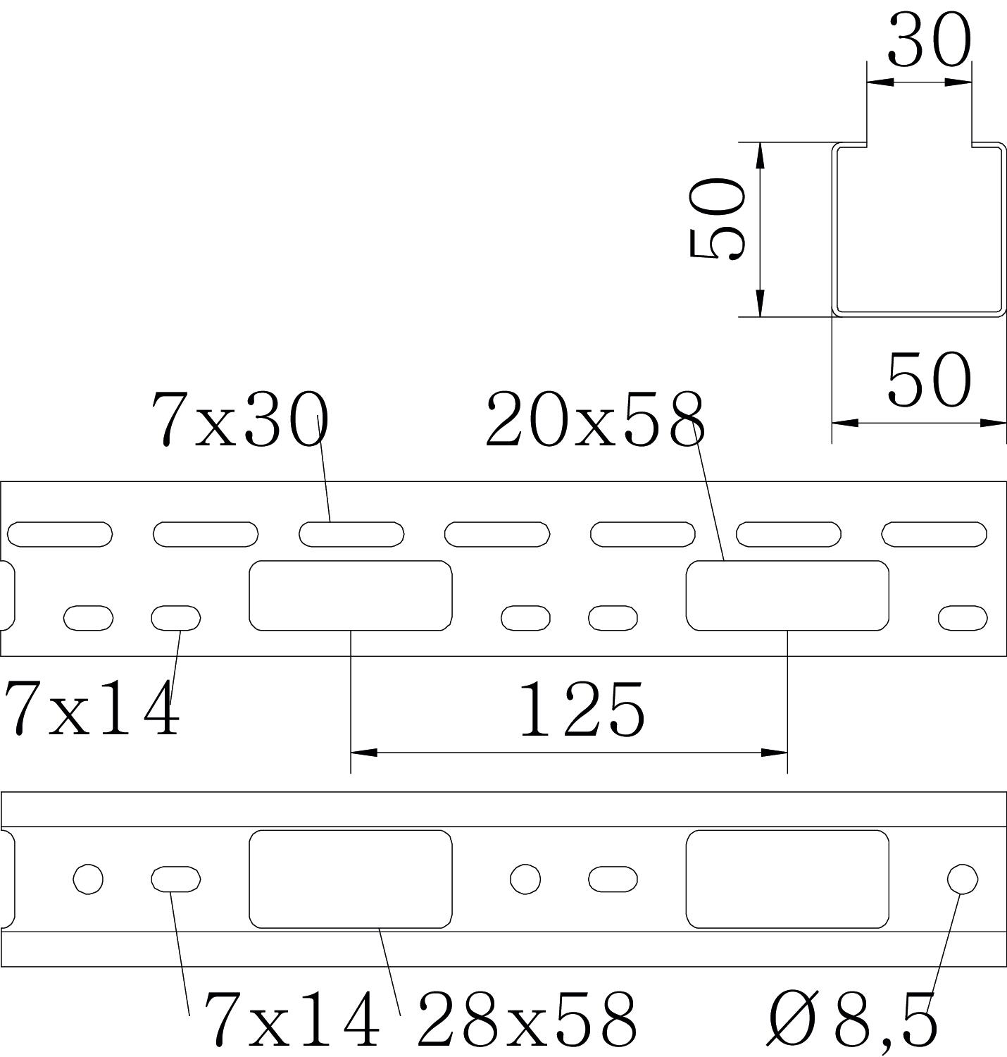 产品描述侧高为50 mm的AZ小线槽。
