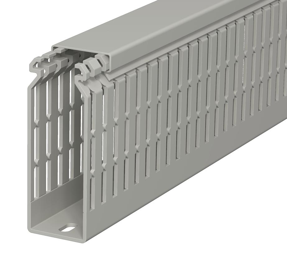 产品描述符合DIN EN 50085-2-3的布线线槽,包括盖和带孔基座,侧孔中的锥形防止电缆脱落。