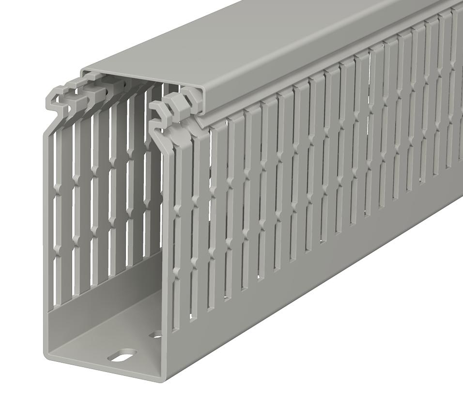 产品描述符合DIN EN 50085-2-3的布线线槽,包括盖和带孔基座,侧孔中的锥形防止电缆脱落。