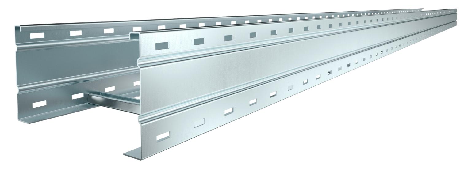 产品描述大跨距梯架,侧壁带孔,侧高160 mm。 使用型号为2056的夹子固定电缆。