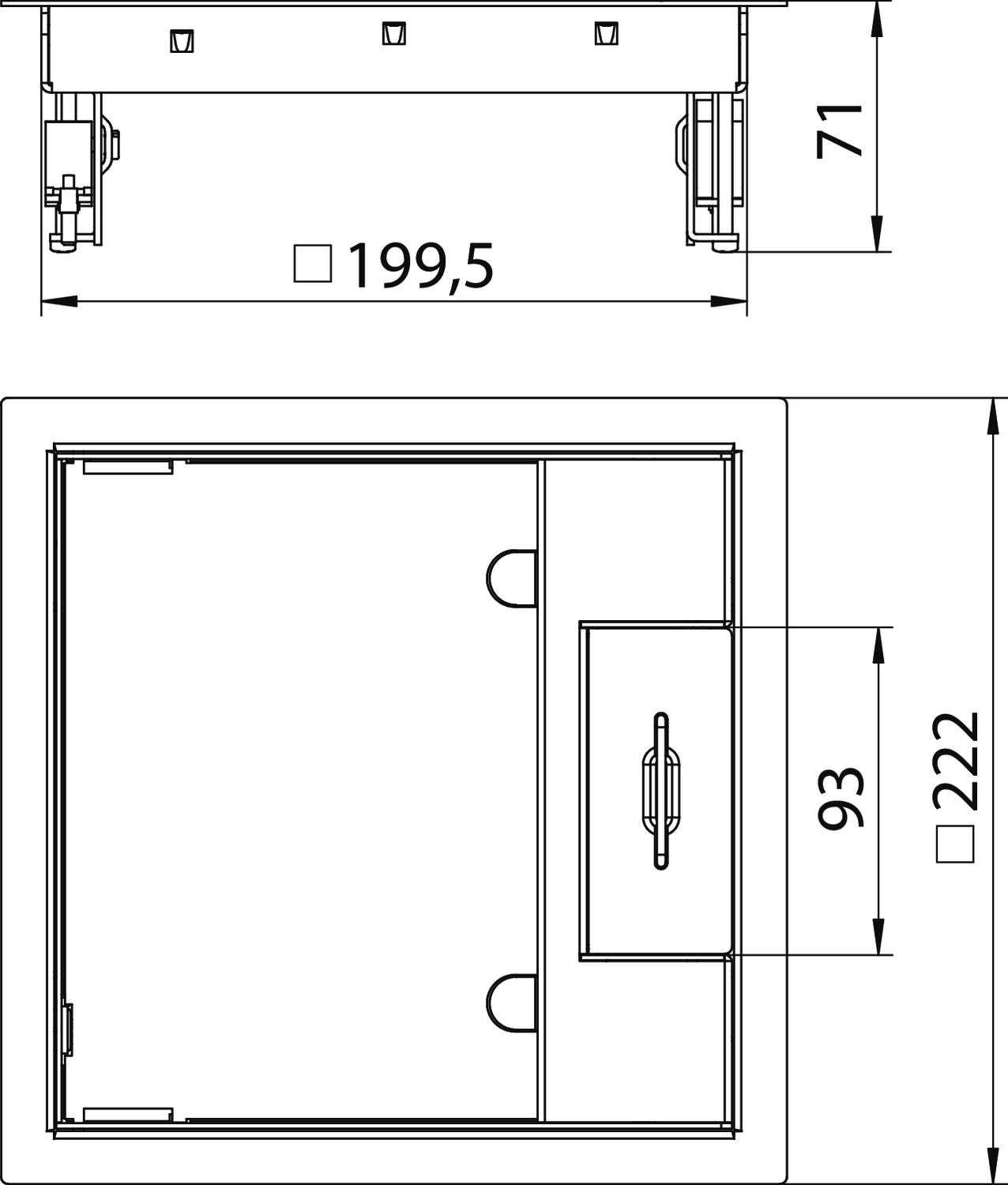 Service outlet with handle clamp, 2-compartment, for the installation of MT4 mounting support. Two type APMT2 cover plates can be installed.