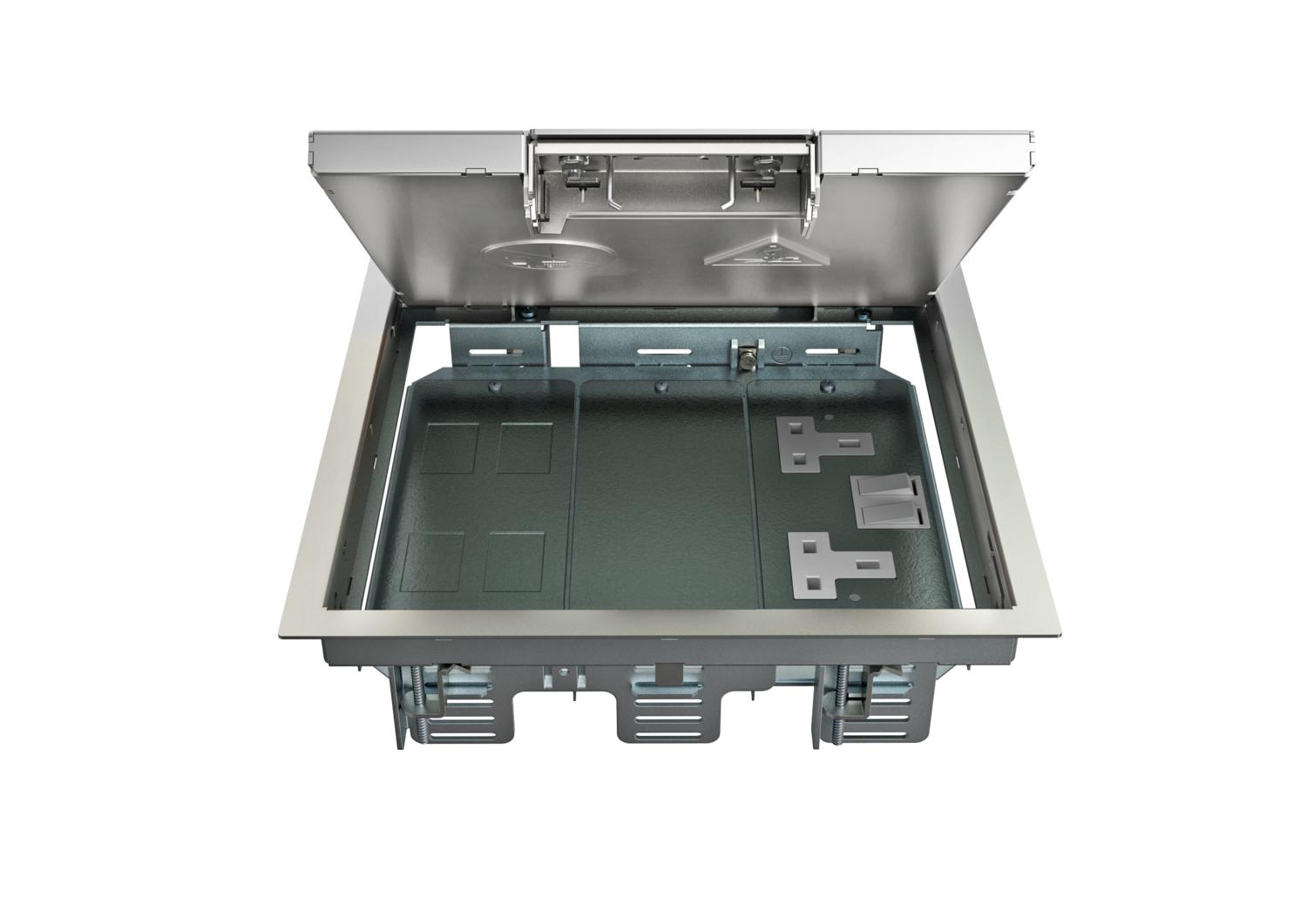 带拉手的地插,三室,用于安装MT9安装支架。 可安装 3 个 APMT5 型盖板