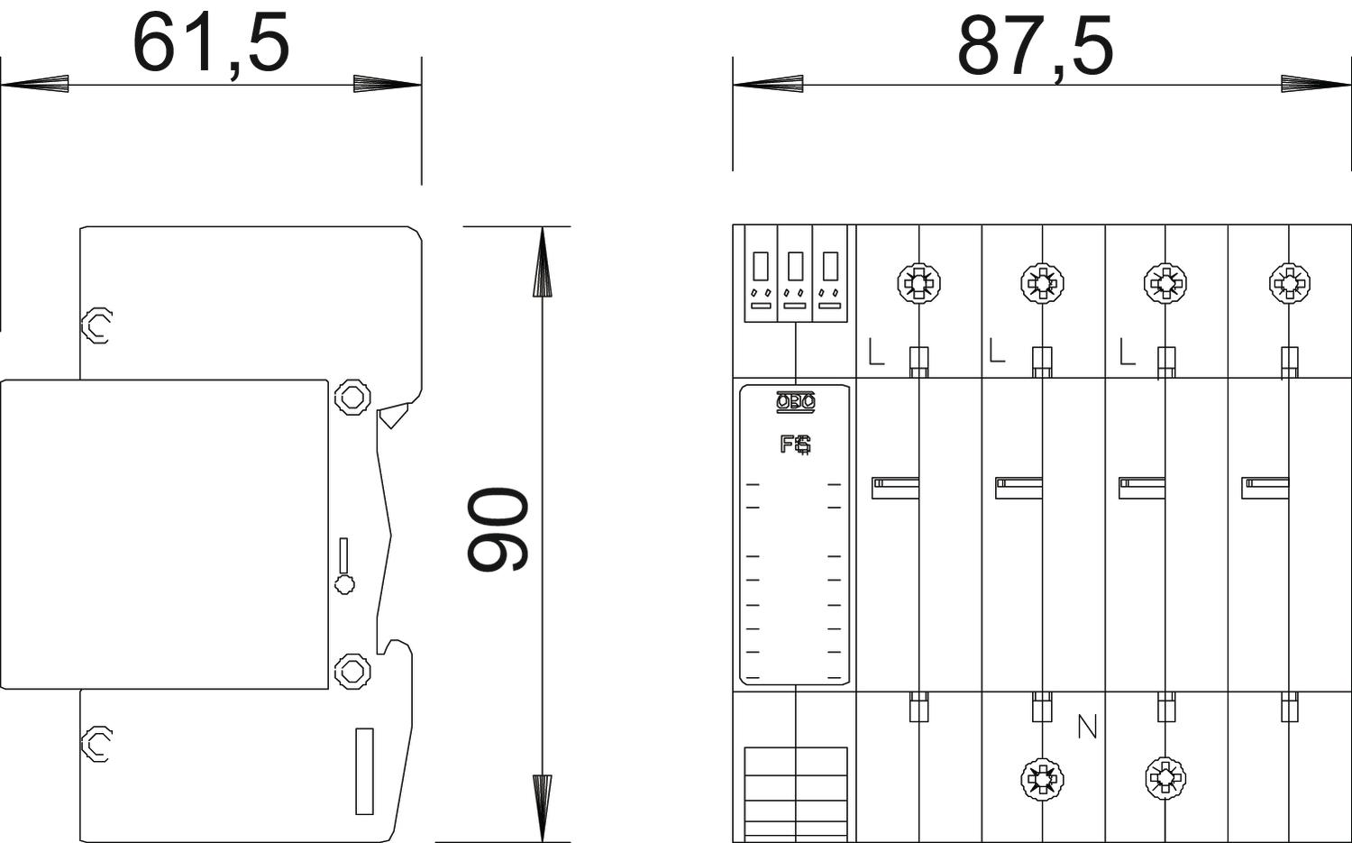 • 带遥信报警装置,用于远程监控和SPD运行状态的浮动切换触点