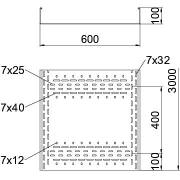 产品描述重型,可行走式电缆桥架系统BKRS,带底部穿孔,侧高100mm。