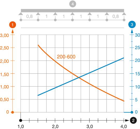带有电缆桥架/梯子宽度的负载曲线,单位为 mm
