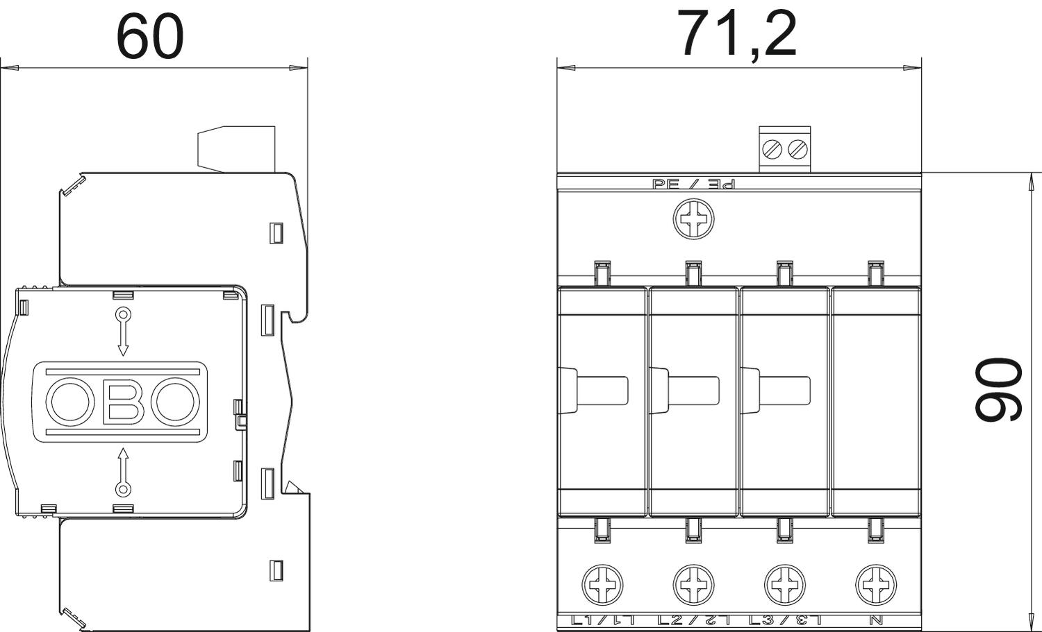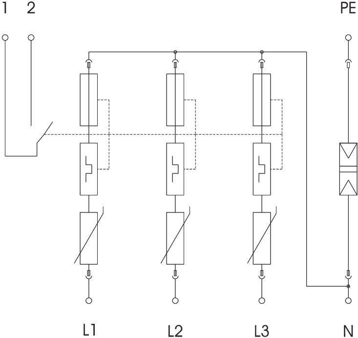 • 带遥信报警装置,用于远程监控和SPD运行状态的浮动切换触点