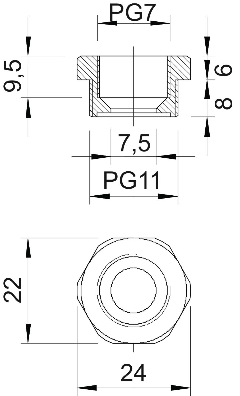 CO2 足迹 (GWP) 从摇篮到大门 0,0285 kg CO2e / 1 件 E尺寸 24 mm 内螺纹尺寸PG 7 外螺纹尺寸,PG 11 尺寸 PG11-PG7 尺寸 D 7,5 mm 尺寸 L1 8 mm 尺寸 L2 6 mm 尺寸 L3 9,5 mm 扳手开口度 22 无卤 是 材料 聚酰胺 螺纹类型:内螺纹 PG 螺纹类型:外螺纹 PG 螺纹长度 8 mm 镀镍 否 防爆 否 颜色 浅灰色;RAL 7035 - 所有型号