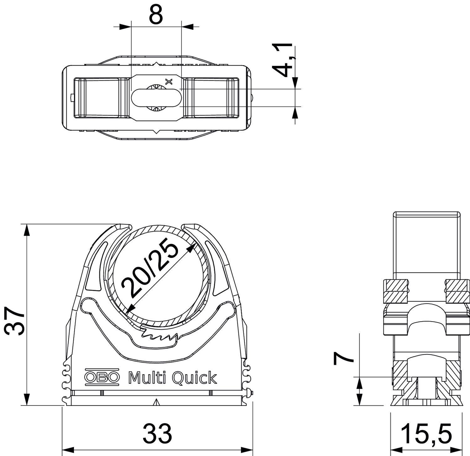 产品描述用于安装公制管道和 Quick-Pipe 管道的明装夹具。 几毫米的灵活夹持范围。 室内和室外墙壁和天花板上的通用安装选项。 免工具管道安装。 也可以与 OBO Quick 或 starQuick 夹具对齐。