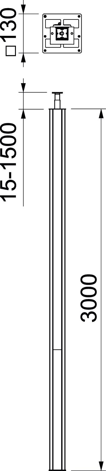 服务杆配有内部夹紧装置,可方便地在地板和天花板之间张紧。 可伸缩方管的夹紧范围为3015 mm–4500 mm。 电缆和线路可以通过伸缩方管插入,也可以直接从下方或上方插入主型材。
