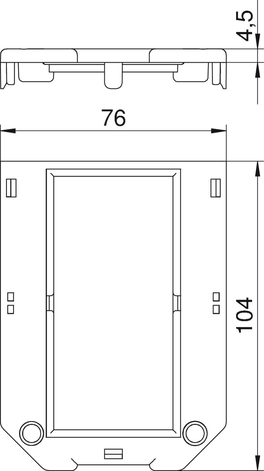 长方形开口的安装盒盖板,用于两个Modul 45插座。 L = 104 mm.
