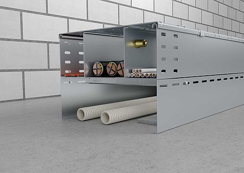 我们愿意将我们的理论和实践知识传授给您。为了回答您的所有问题,例如关于电缆桥架系统、带盖板电缆线槽或防踩踏电缆线槽,我们开发了广泛的产品系列:
