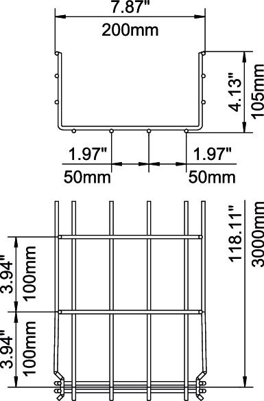 网格式桥架不需要任何额外的连接件,只需相互卡接在一起即可。 网孔尺寸为50 x 100 mm。