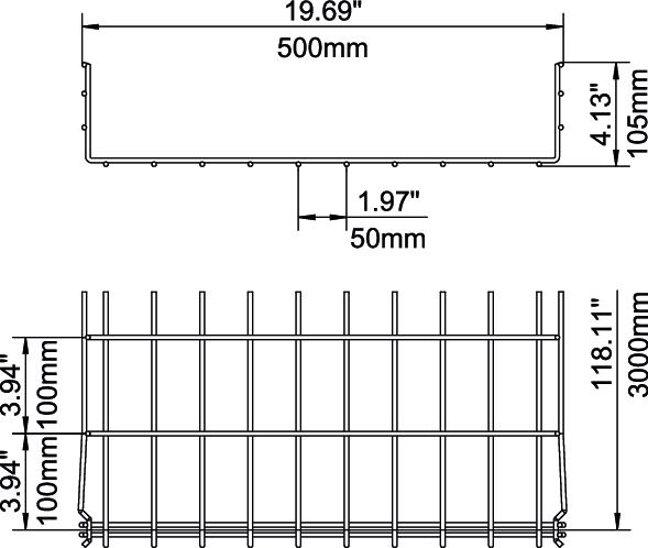 网格式桥架不需要任何额外的连接件,只需相互卡接在一起即可。 网孔尺寸为50 x 100 mm。