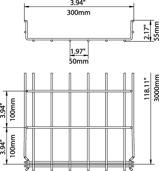 网格式桥架不需要任何额外的连接件,只需相互卡接在一起即可。 网孔宽度为50 x 100 mm(例外,GRM 55/50型 = 20 x 100 mm)。