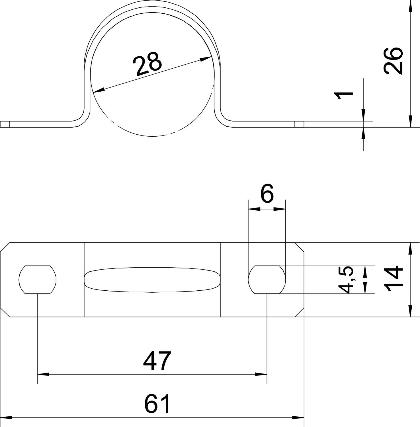 CO2 足迹 (GWP) 从摇篮到大门 0,0249 kg CO2e / 1 件 到墙的距离 否 固定方式 螺丝孔 塑料盖 否 宽度 14 mm 尺寸 28mm 尺寸 A 61 mm 尺寸 B 47 mm 尺寸 b 14 mm 尺寸 d 4,5 mm 尺寸 D 28 mm 尺寸 e 6 mm 尺寸 t 1 mm 尺寸H 26 mm 开孔尺寸 4,5 x 6 mm 抗紫外线 是 无卤 是 材料 钢 材料厚度 1 mm 标称直径 28 mm 电缆/管道数量 1 表面 电镀锌 规格 双叶 适用于防火区域 否 适用直径 28 长度 61 mm 高度 26 mm - 所有型号