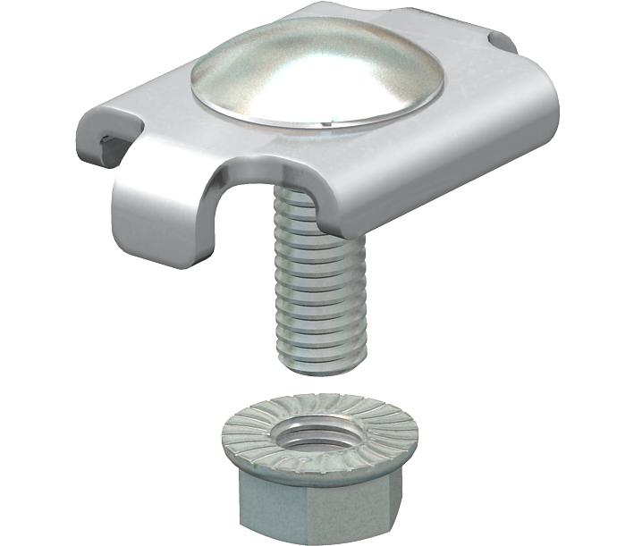 产品描述紧固件,用于将网格式桥架固定到墙面或立柱托臂上。