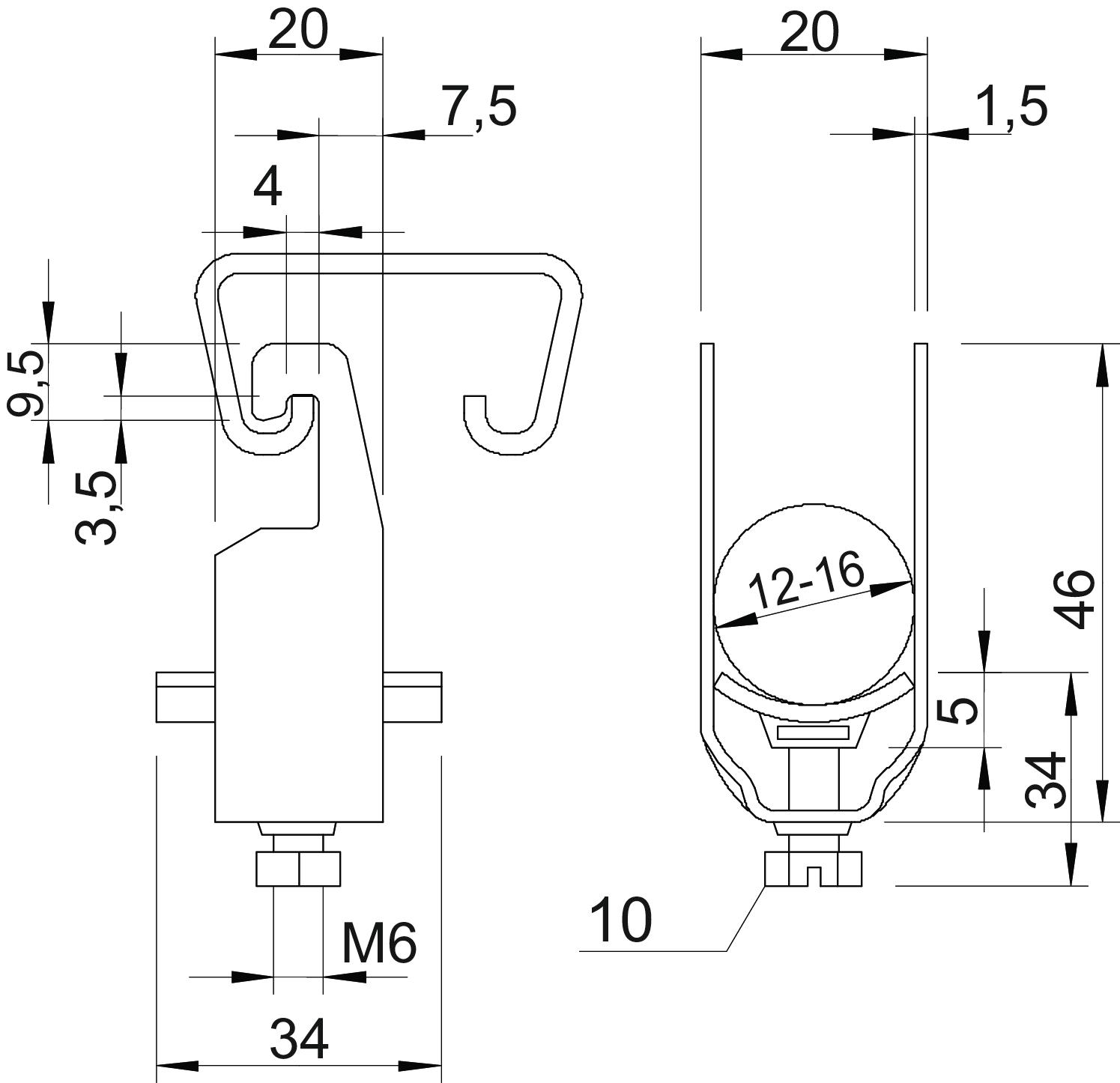 CO2 足迹 (GWP) 从摇篮到大门 0,0706 kg CO₂e / 1 件 安装方式 型材导轨 对于1线缆H 46 mm 对于1线缆L 34 对于2线缆H 64 mm 对于2线缆L 34 mm 对于3线缆H 82 mm 对于3线缆L 47 mm 尺寸 12-16mm 尺寸 A 20 mm 尺寸 B 20 mm 尺寸 C 34 mm 尺寸 L 34 mm 尺寸 t 1,5 mm 尺寸 x 5 mm 尺寸G (mm) M6 尺寸H 46 mm 带反向压板 否 带塑料槽 是 带金属槽 否 抗冲击性 否 无卤 是 最大 拧紧扭矩 3 Nm 最大夹紧范围 D 16 mm 最小夹紧范围 D 12 mm 材料 钢 材料添加 钢 水槽材质 塑料 水槽的材料质量 聚丙烯 电缆/管道数量 1 表面 热浸镀锌 表面添加 热镀锌 适用于采用最大槽宽(包括间隔)的导轨 22 mm 适用于采用最小槽宽(包括间隔)的导轨 18 mm 适用的最大管道直径 16 mm 适用的最小管道直径 16 mm - 所有型号