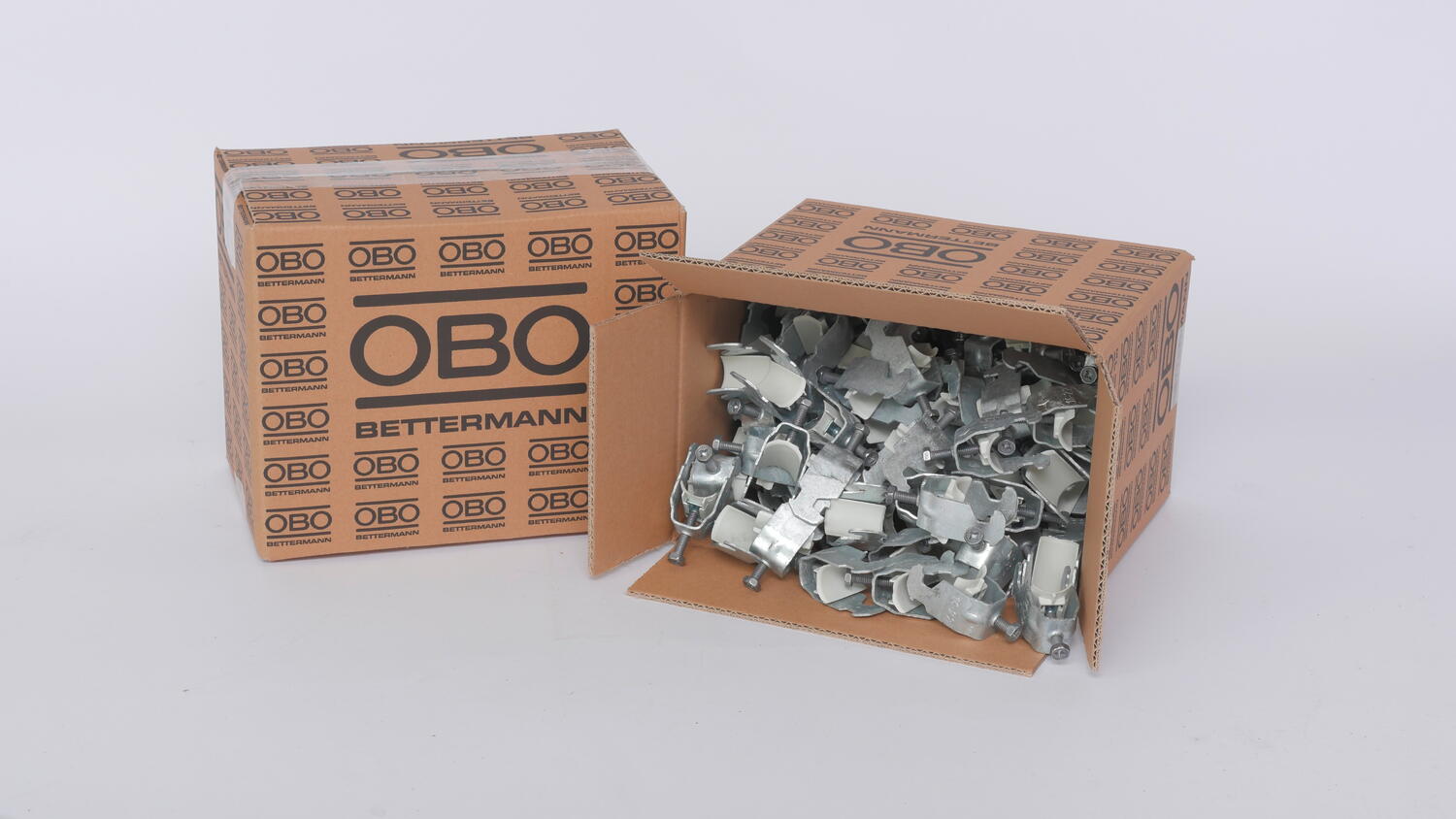轨道夹和螺钉由热浸镀锌钢制成,压力盘由聚丙烯制成,无卤素,颜色为浅灰色RAL 7035
