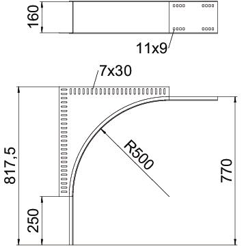 产品描述转角附件,用于高度为 160 mm 的宽跨度电缆桥架和梯子