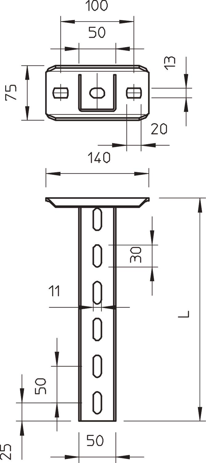产品描述立柱(U 型),尺寸为 50 x 50 mm,带焊接顶板。