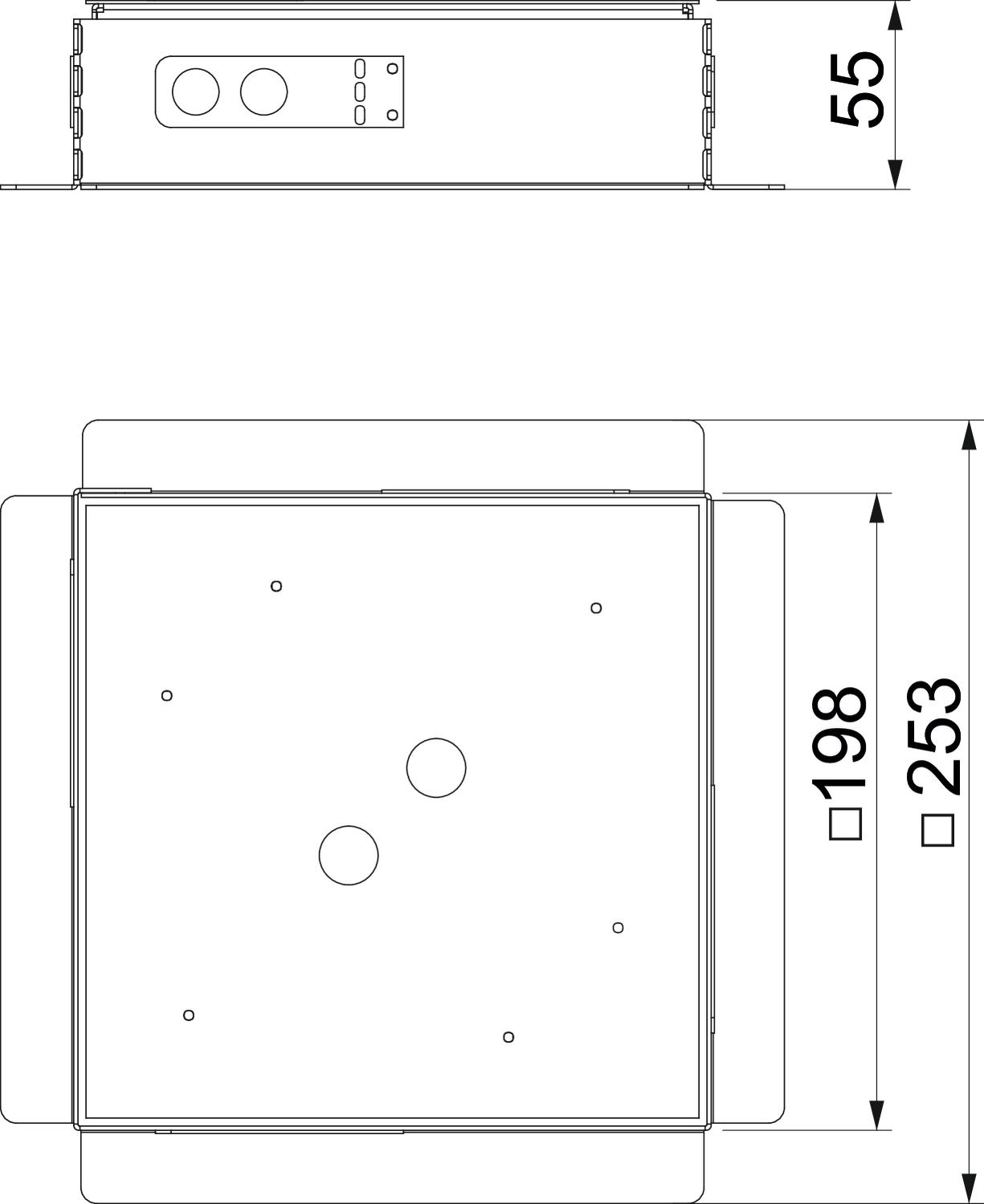 Lined body, suitable for polishing, for the direct and jointless installation of height-adjustable cassettes, nominal size 4, into surface-finished screeds/terrazzo floorings. The casing is laid floatingly onto underfloor boxes with mounting lids of nominal size 4, closing the gaps between underfloor box and cassette frame. The protection cover made from aluminium sheet is put into the cassette frame as a dummy before the screed work is done and can be polished over with the screed or terrazzo.