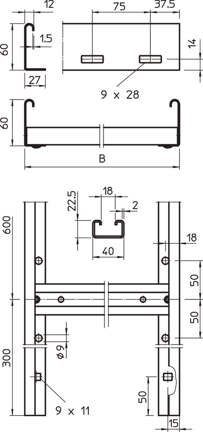 直接在墙上或使用WB 30/75型墙壁支架进行紧固。 横档的插槽尺寸为18 mm,合适的夹具型号为2056U。