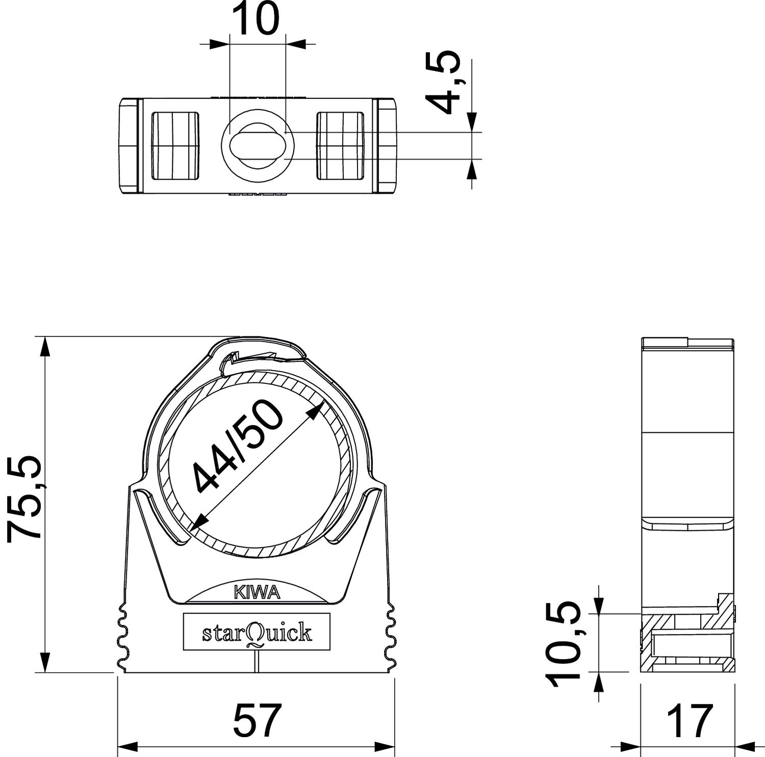 E尺寸 10 mm 关闭 是 可扩展的 是 固定方式 螺丝孔 尺寸 44-50mm 尺寸 A 57 mm 尺寸 B 17 mm 尺寸 F 4,5 mm 尺寸 h 10,5 mm 尺寸H 75,5 mm 带镶嵌材料 否 抗紫外线 是 断裂荷载 1,2 kN 无卤 是 最大夹紧范围 D 50 mm 最小夹紧范围 D 44 mm 材料 聚酰胺 电缆/管道数量 1 阻燃 符合 VDE 0471/DIN 695 第 2-1,试验温度 650°C 颜色 浅灰色;RAL 7035 额定变量/文本 45-50 - 所有型号