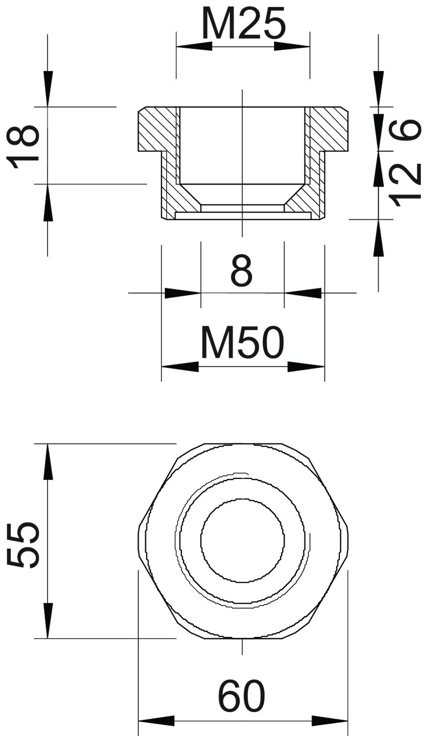 CO2 足迹 (GWP) 从摇篮到大门 0,0897 kg CO2e / 1 件 E尺寸 60 mm 公制内螺纹尺寸 25 外螺纹尺寸,公制 50 尺寸 M50-M25 尺寸 L 18 mm 尺寸 L1 12 mm 尺寸 L2 6 mm 尺寸 L3 18 mm 扳手开口度 55 无卤 是 材料 聚酰胺 螺纹类型:内螺纹 公制 螺纹类型:外螺纹 公制 螺纹长度 12 mm 镀镍 否 防爆 否 颜色 浅灰色;RAL 7035 - 所有型号