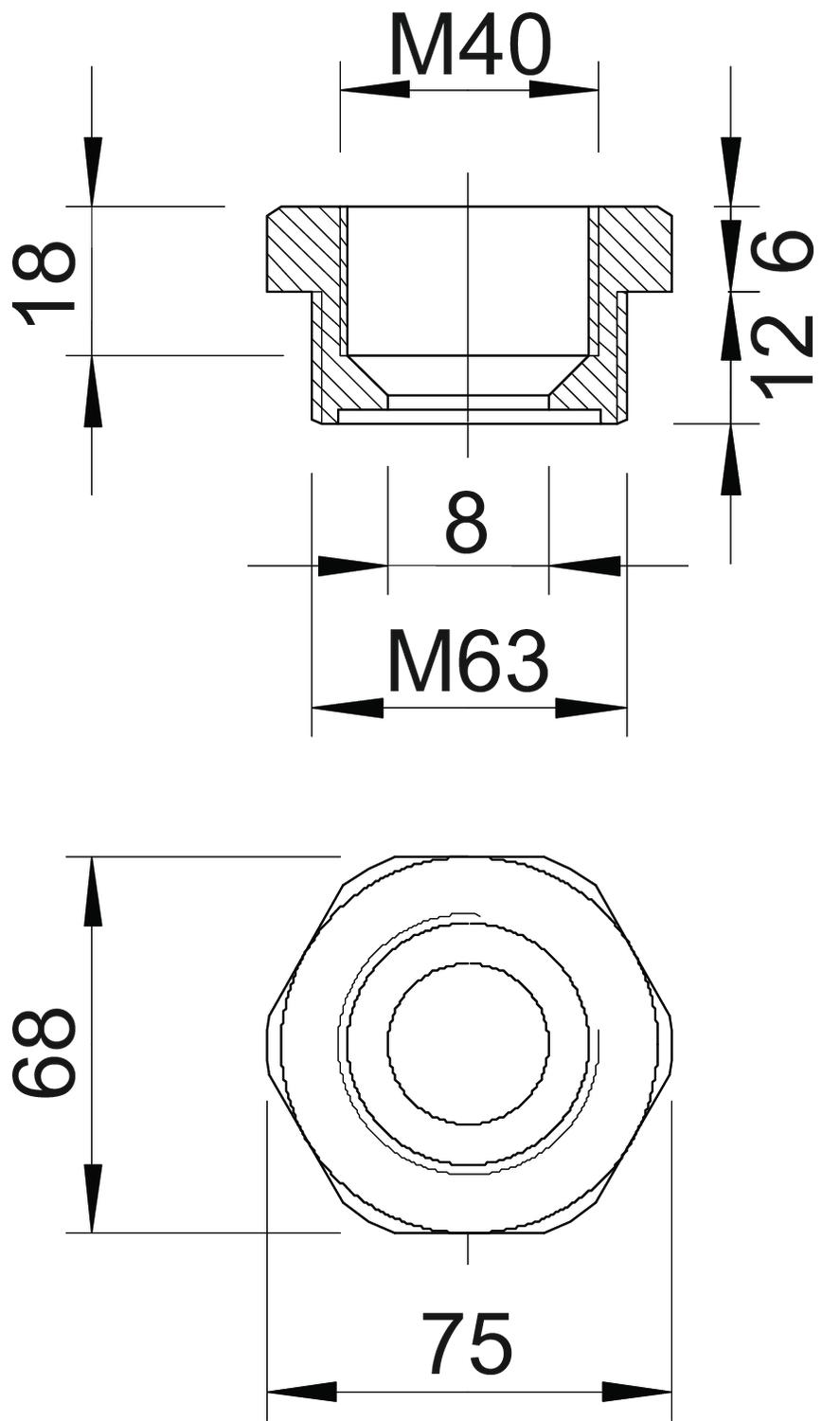 CO2 足迹 (GWP) 从摇篮到大门 0,1202 kg CO2e / 1 件 E尺寸 75 mm 公制内螺纹尺寸 40 外螺纹尺寸,公制 63 尺寸 M63-M40 尺寸 L 18 mm 尺寸 L1 12 mm 尺寸 L2 6 mm 尺寸 L3 18 mm 扳手开口度 68 无卤 是 材料 聚酰胺 螺纹类型:内螺纹 公制 螺纹类型:外螺纹 公制 螺纹长度 12 mm 镀镍 否 防爆 否 颜色 浅灰色;RAL 7035 - 所有型号