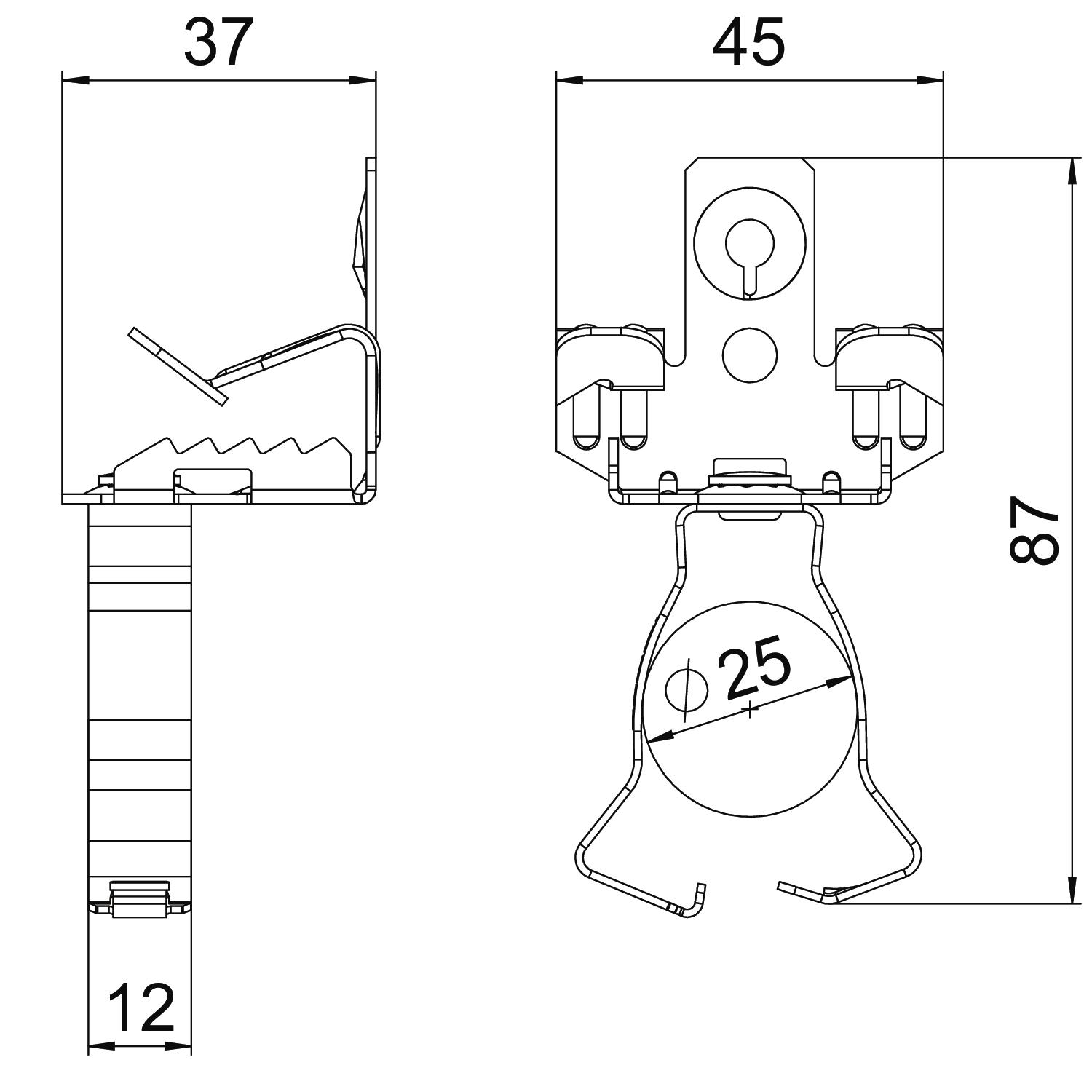 产品描述Support clamp for mounting pipes. Closed pipe seat at bottom. Fastening through knocking onto steel girders.