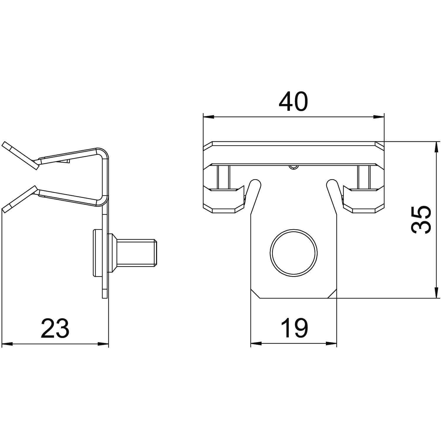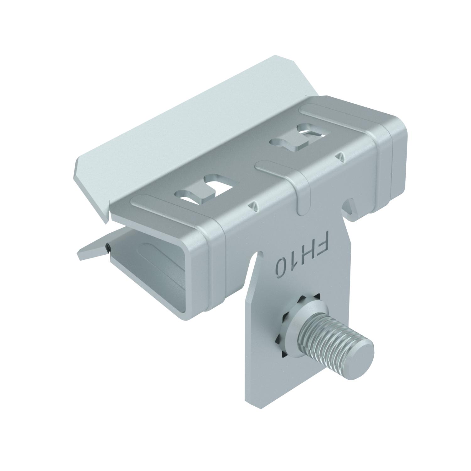 Support clamp with M6 threaded bolt at side for individual mounting solutions. Fastening through knocking onto steel girders.