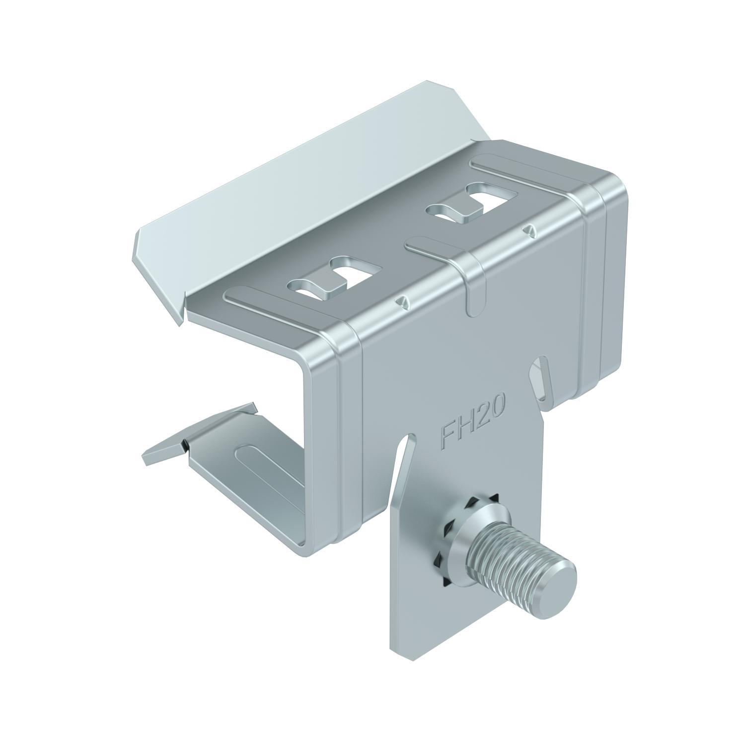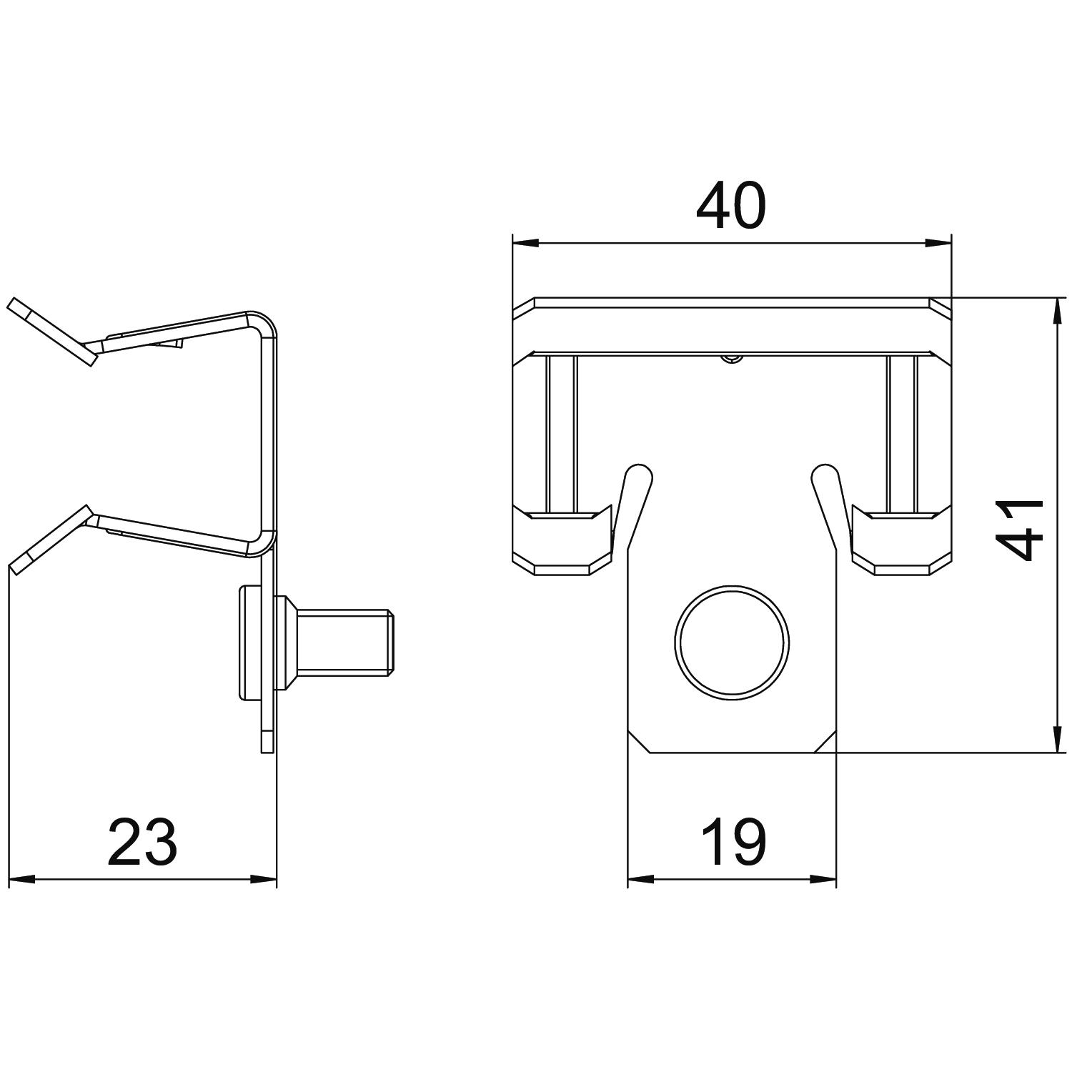 产品描述Support clamp with M6 threaded bolt at side for individual mounting solutions. Fastening through knocking onto steel girders.