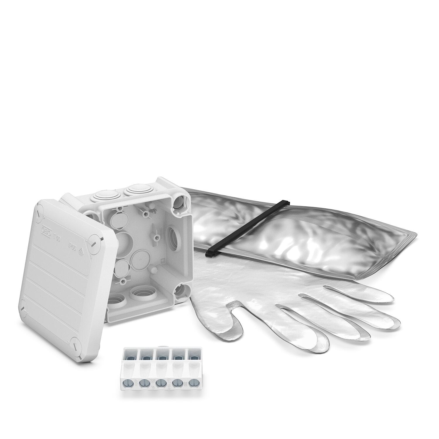 产品描述套件包括接线盒 T 60 和端子板、铸造树脂和一副一次性手套。 混合袋中的 2 组分浇铸树脂,用于根据IP68防护等级和机械负载保护电气装置防潮。