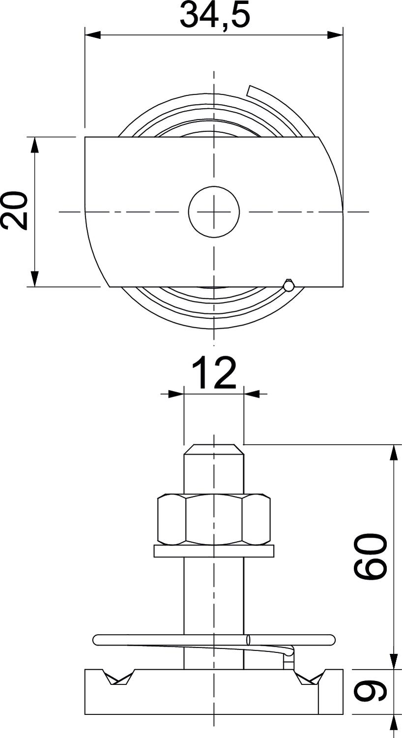 CO2 足迹 (GWP) 从摇篮到大门 0,3552 kg CO₂e / 1 件 垫圈直径Ø 24 mm 宽度 20 mm 尺寸 M12x60mm 尺寸 L 60 mm 尺寸H 9 mm 扭矩 27 Nm 材料 钢 螺纹 M 12 x 60 表面 热浸镀锌 适用于安装导轨 是 长度 34,5 mm 高度 9 mm - 所有型号