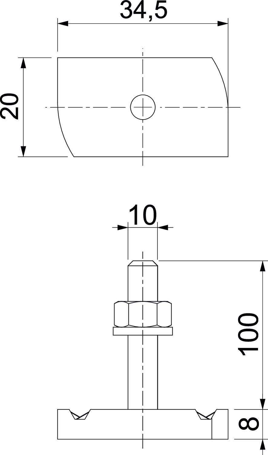 CO2 足迹 (GWP) 从摇篮到大门 0,3114 kg CO2e / 1 件 垫圈直径Ø 20 mm 宽度 20 mm 尺寸 M10x100mm 尺寸 L 100 mm 尺寸H 8 mm 扭矩 16 Nm 材料 钢 螺纹 M 10 x 100 表面 锌板 适用于安装导轨 是 长度 34,5 mm 高度 8 mm - 所有型号