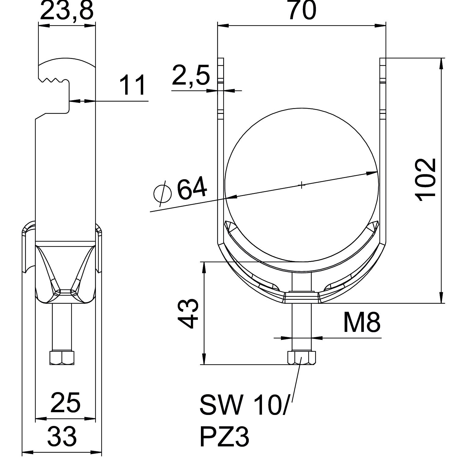 CO2 足迹 (GWP) 从摇篮到大门 0,3554 kg CO2e / 1 件 外形长度 33 mm 安装方式 平面型材 宽度 70 mm 尺寸 58-64mm 尺寸 A 25 mm 尺寸 B 70 mm 尺寸 C 33 mm 尺寸 L 43 mm 尺寸 t 2,5 mm 尺寸G (mm) M8 尺寸H 102 mm 带反向压板 否 带金属槽 是 无卤 是 最大 拧紧扭矩 5 Nm 最大夹紧范围 D 64 mm 最小夹紧范围 D 58 mm 材料 钢 材料添加 钢 板厚 2,5 mm 水槽材质 钢 电缆/管道数量 1 螺纹 M8 表面 热浸镀锌 表面添加 热镀锌 适用的最大管道直径 64 mm 适用的最小管道直径 58 mm 长度 25 mm 间隙 10 mm 高度 102 mm - 所有型号
