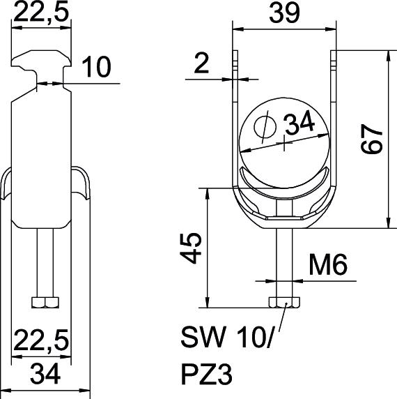 产品描述带锤头脚的U型夹,带圆形边缘的金属压板用于电缆保护。 用于在C型导轨上垂直和水平安装1根电缆。 用于槽宽 16- 17 mm。 压板上带 1个螺钉,通用六角螺钉头 SW10,带槽和十字槽。 适用于室内和室外安装。 建议使用反向压板。