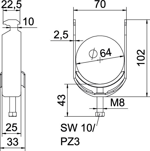 产品描述带锤头脚的U型夹,带圆形边缘的金属压板用于电缆保护。 用于在C型导轨上垂直和水平安装1根电缆。 用于槽宽 16- 17 mm。 压板上带 1个螺钉,通用六角螺钉头 SW10,带槽和十字槽。 适用于室内和室外安装。 建议使用反向压板。