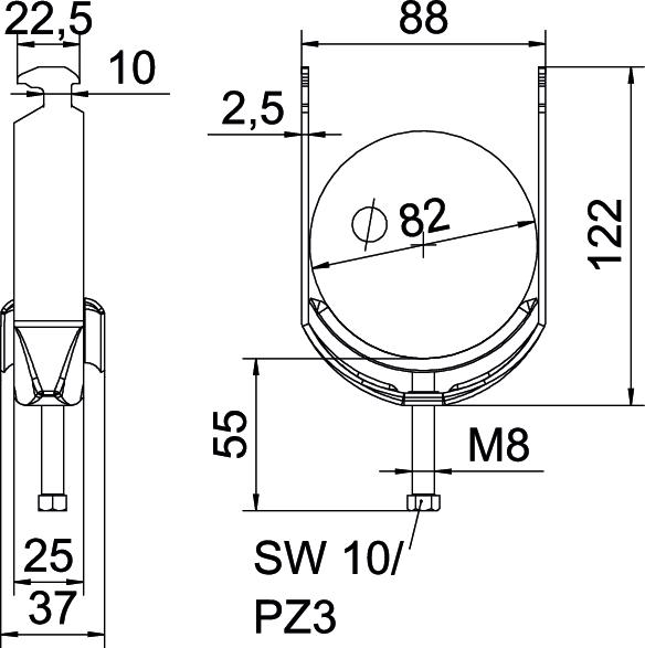 产品描述带锤头脚的U型夹,带圆形边缘的金属压板用于电缆保护。 用于在C型导轨上垂直和水平安装1根电缆。 用于槽宽 16- 17 mm。 压板上带 1个螺钉,通用六角螺钉头 SW10,带槽和十字槽。 适用于室内和室外安装。 反向压板必须单独订购。