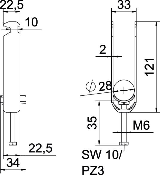 产品描述带锤头脚的U型夹,塑料压板由聚丙烯制成。 用于在C型导轨上垂直和水平安装3根电缆。 用于槽宽 16- 17 mm。 压板上带 1个螺钉,通用六角螺钉头 SW10,带槽和十字槽。 适用于室内和室外安装。 多根电缆应该用双向压板分开。 建议使用反向压板。