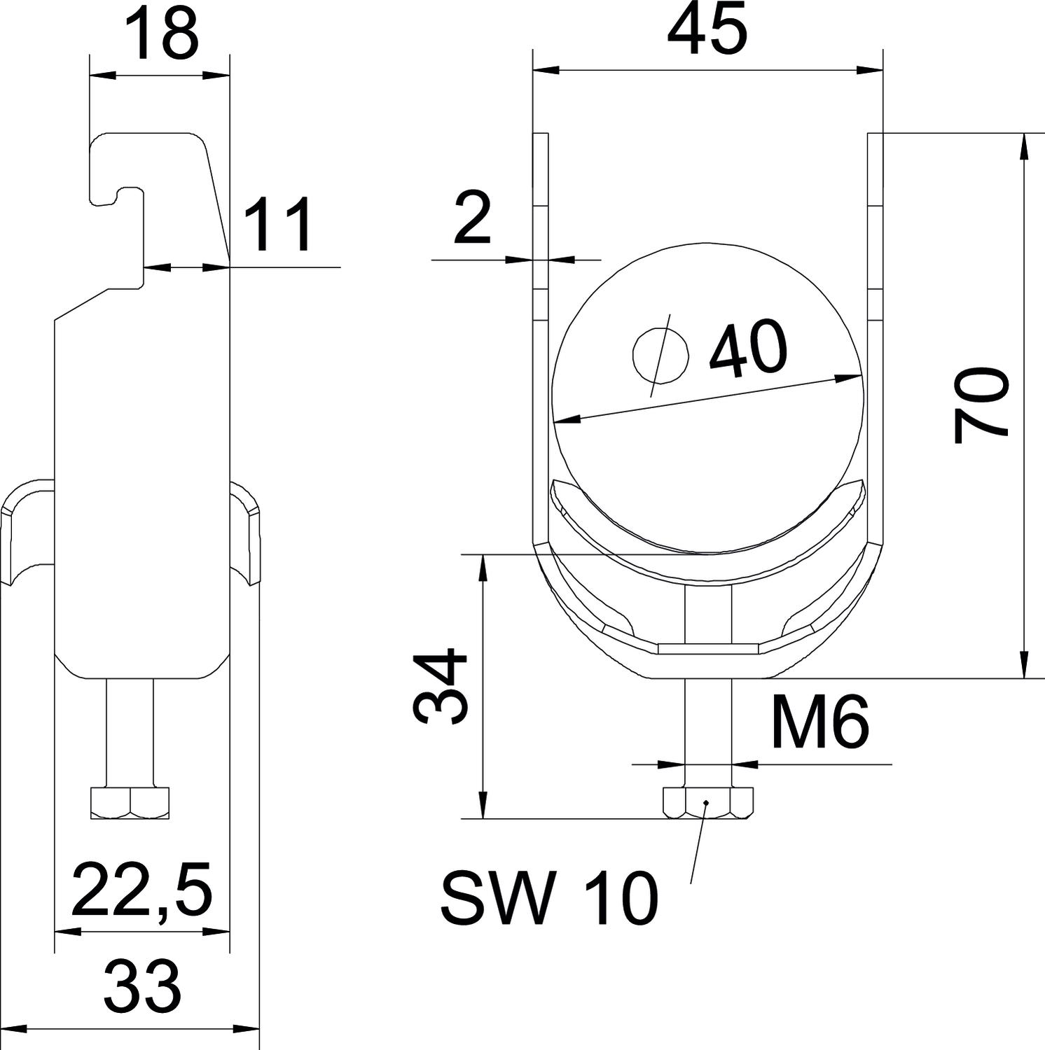 CO2 足迹 (GWP) 从摇篮到大门 0,4007 kg CO2e / 1 件 外形长度 33 mm 安装方式 型材导轨 宽度 45 mm 尺寸 34-40mm 尺寸 A 22,5 mm 尺寸 B 45 mm 尺寸 C 33 mm 尺寸 L 34 mm 尺寸 t 2 mm 尺寸G (mm) M6 尺寸H 70 mm 带反向压板 否 带金属槽 是 无卤 是 最大 拧紧扭矩 3 Nm 最大夹紧范围 D 40 mm 最小夹紧范围 D 34 mm 材料 不锈钢,防锈等级 1.4571 材料添加 不锈钢 板厚 2 mm 水槽材质 不锈钢 电缆/管道数量 1 螺纹 M6 表面 亮面,重新加工 表面添加 未处理 适用于采用最大槽宽(包括间隔)的导轨 22 mm 适用于采用最小槽宽(包括间隔)的导轨 18 mm 适用的最大管道直径 40 mm 适用的最小管道直径 34 mm 长度 22,5 mm 间隙 10 mm 高度 70 mm - 所有型号
