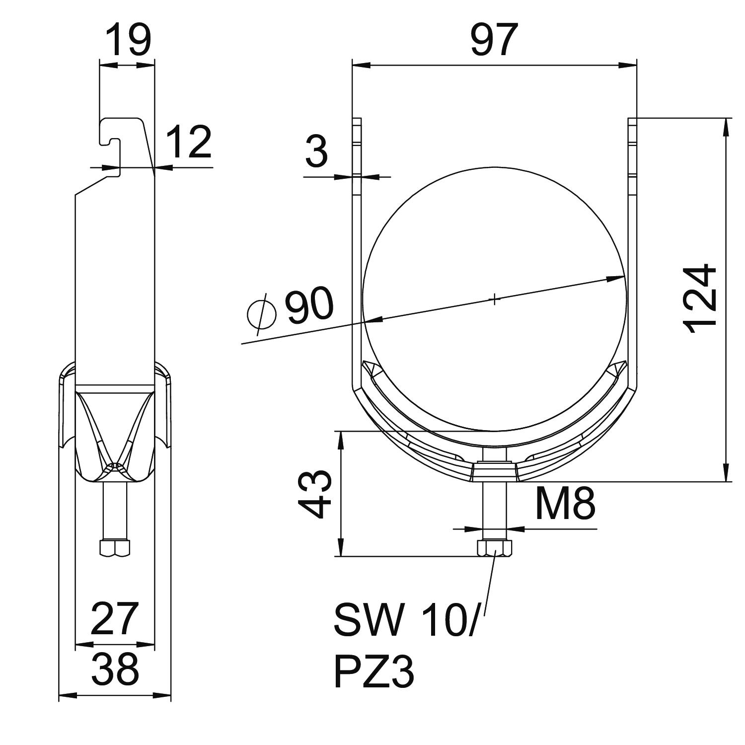 CO2 足迹 (GWP) 从摇篮到大门 0,7018 kg CO2e / 1 件 功能维护 是 外形长度 38 mm 安装方式 型材导轨 宽度 97 mm 尺寸 82-90mm 尺寸 A 27 mm 尺寸 B 97 mm 尺寸 C 38 mm 尺寸 L 43 mm 尺寸 t 3 mm 尺寸G (mm) M8 尺寸H 124 mm 带反向压板 否 带塑料槽 否 带金属槽 是 无卤 是 最大 拧紧扭矩 5 Nm 最大夹紧范围 D 90 mm 最小夹紧范围 D 82 mm 材料 钢 材料添加 钢 板厚 3 mm 水槽材质 钢 电缆/管道数量 1 螺纹 M8 表面 热浸镀锌 表面添加 热镀锌 适用于采用最大槽宽(包括间隔)的导轨 22 mm 适用于采用最小槽宽(包括间隔)的导轨 18 mm 适用的最大管道直径 90 mm 适用的最小管道直径 82 mm 长度 27 mm 间隙 10 mm 高度 124 mm - 所有型号