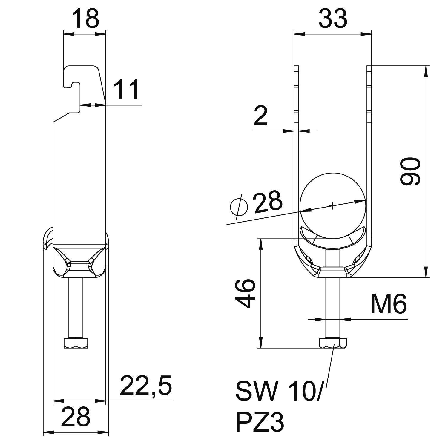 产品描述带U型脚的U型夹,带圆形边缘的金属压板用于电缆保护。 用于在C型导轨上垂直和水平安装2根电缆。 用于槽宽 18 - 22 mm。 压板上带 1个螺钉,通用六角螺钉头 SW10,带槽和十字槽。 适用于室内和室外安装。 多根电缆应该用双向压板分开。 建议使用反向压板。