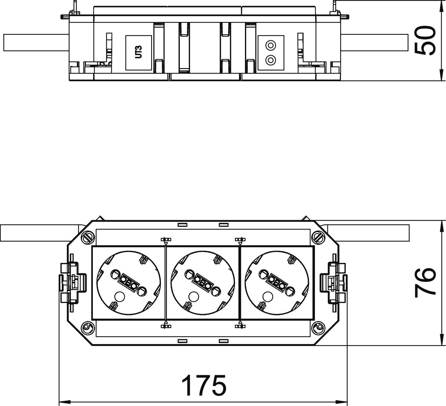 即插即用的通用支架 UTC3 ,有 2 个预装的白色 33° 保护触点插座,16 A 和一个预装的橙色 33° 保护触点插座,16 A。