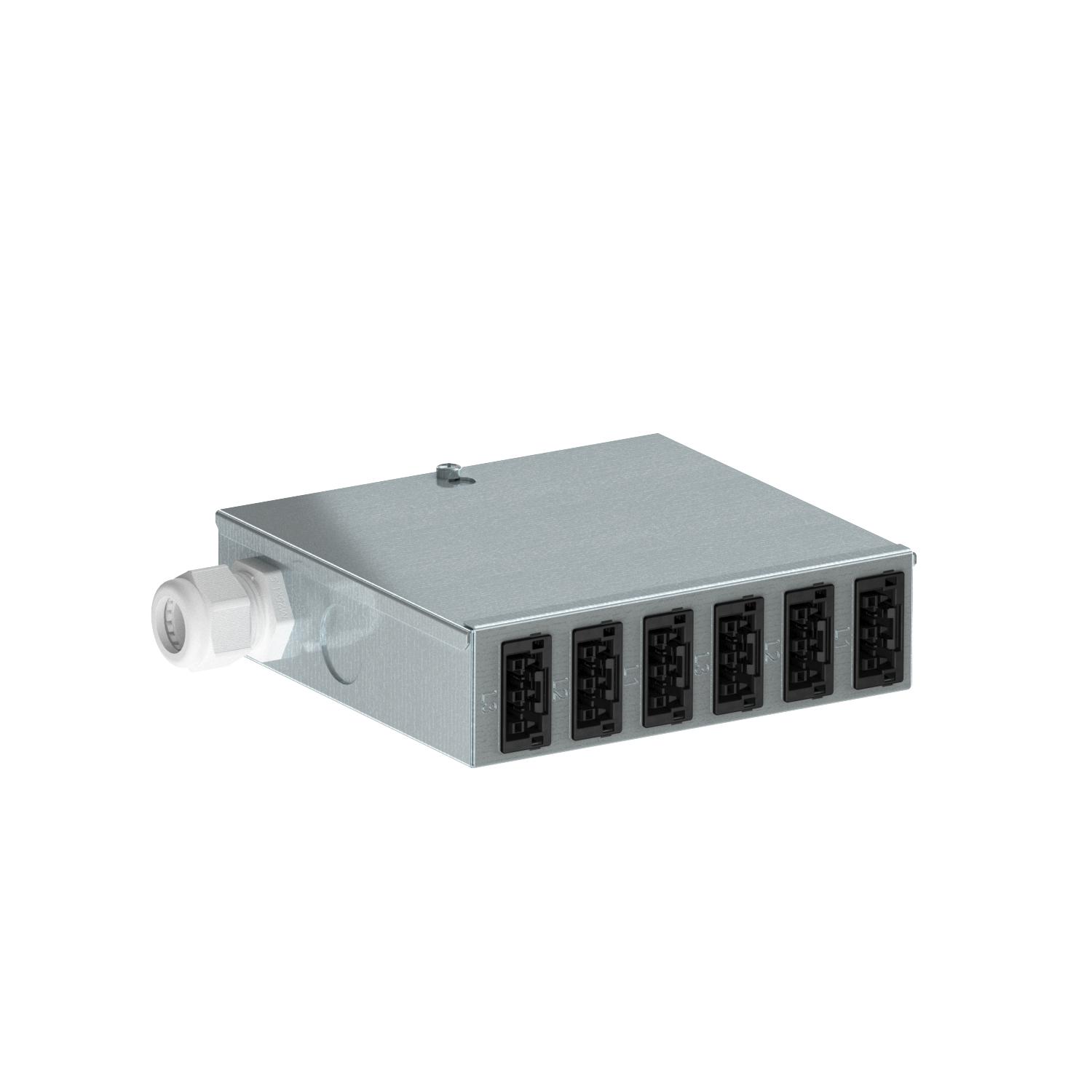Output: 6 self-locking plug connectors, 3-pin, in black, 25 A, type WINSTA (socket part: 2x L1, 2x L2, 2 x L3