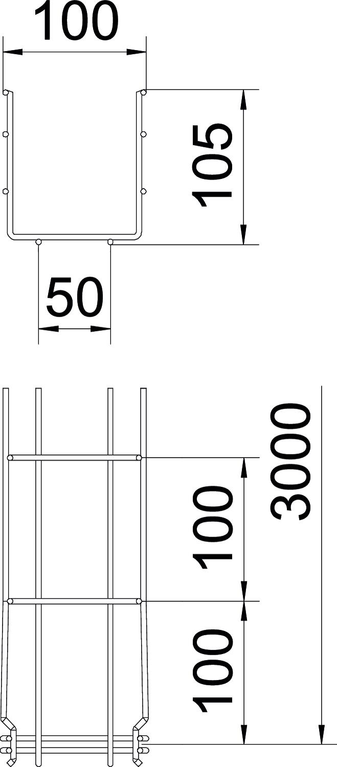 产品描述带模制连接件、侧高为105 mm的网栅线缆槽。