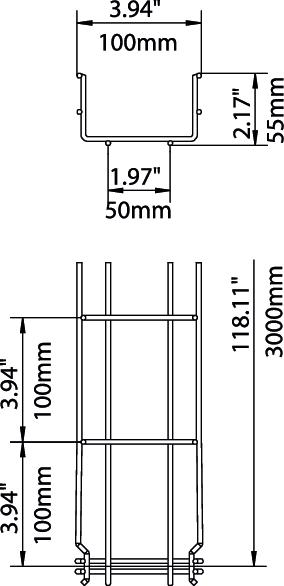 网格式桥架不需要任何额外的连接件,只需相互卡接在一起即可。 网孔宽度为50 x 100 mm(例外,GRM 55/50型 = 20 x 100 mm)。