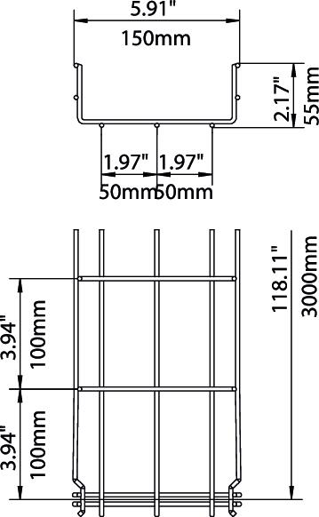 网格式桥架不需要任何额外的连接件,只需相互卡接在一起即可。 网孔宽度为50 x 100 mm(例外,GRM 55/50型 = 20 x 100 mm)。